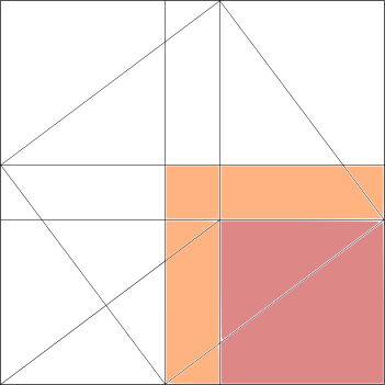 We want to prove that area of the square of the short leg and the square of the long leg is equal in combined area with the square of the hypotenuse. The red square in (b) is the square of the short leg, and the orange square (with the red square inside it) is the square of the long leg.