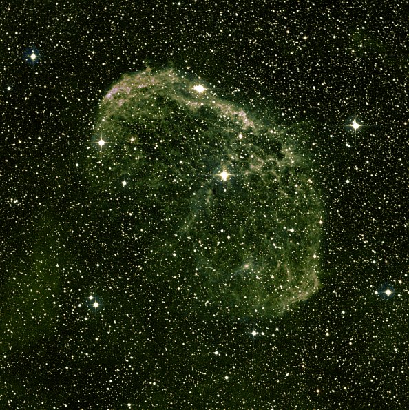 Still, it was worth the effort. It's a gloriously easy to use representation of the night skies, and I immediately went flicking about through the constellations at random, checking out interesting nebulae and so on. One of the things that I found was a little nebula at 20h33m49.32s RA, 45°38'24.93" dec. What's that, I wondered? What's that indeed.